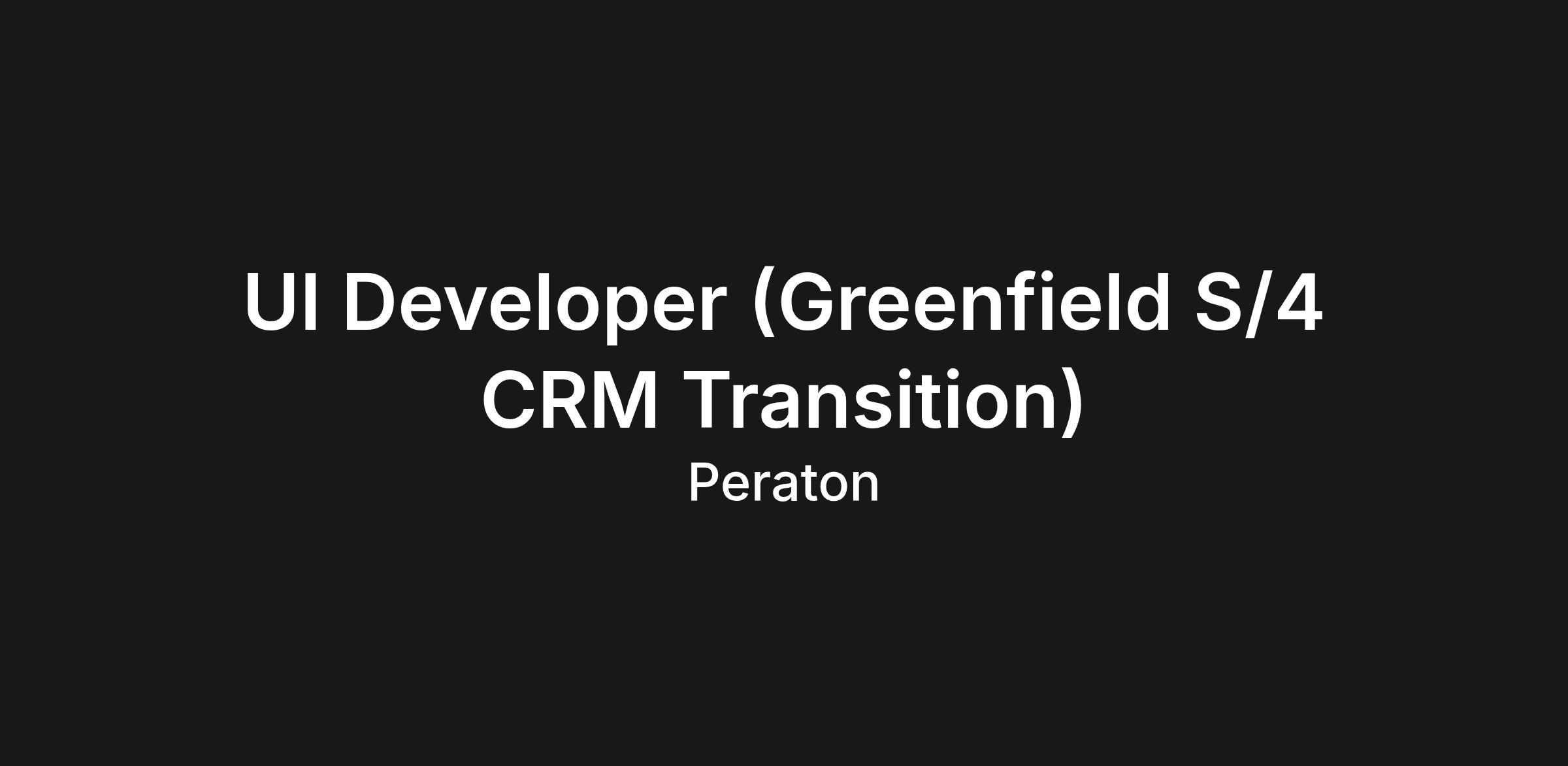 We are seeking a skilled and forward-thinking UI Developer (Greenfield S/4 CRM Transition) to drive the front-end evolution of our Greenfield S/4 CRM implementation. This role is designed for a technical specialist who excels in the SAP Fiori and UI5 ecosystem but approaches development with a modern, agile mindset. You will be responsible for crafting intuitive, high-performance user interfaces that bridge the gap between complex CRM workflows and a seamless end-user experience.