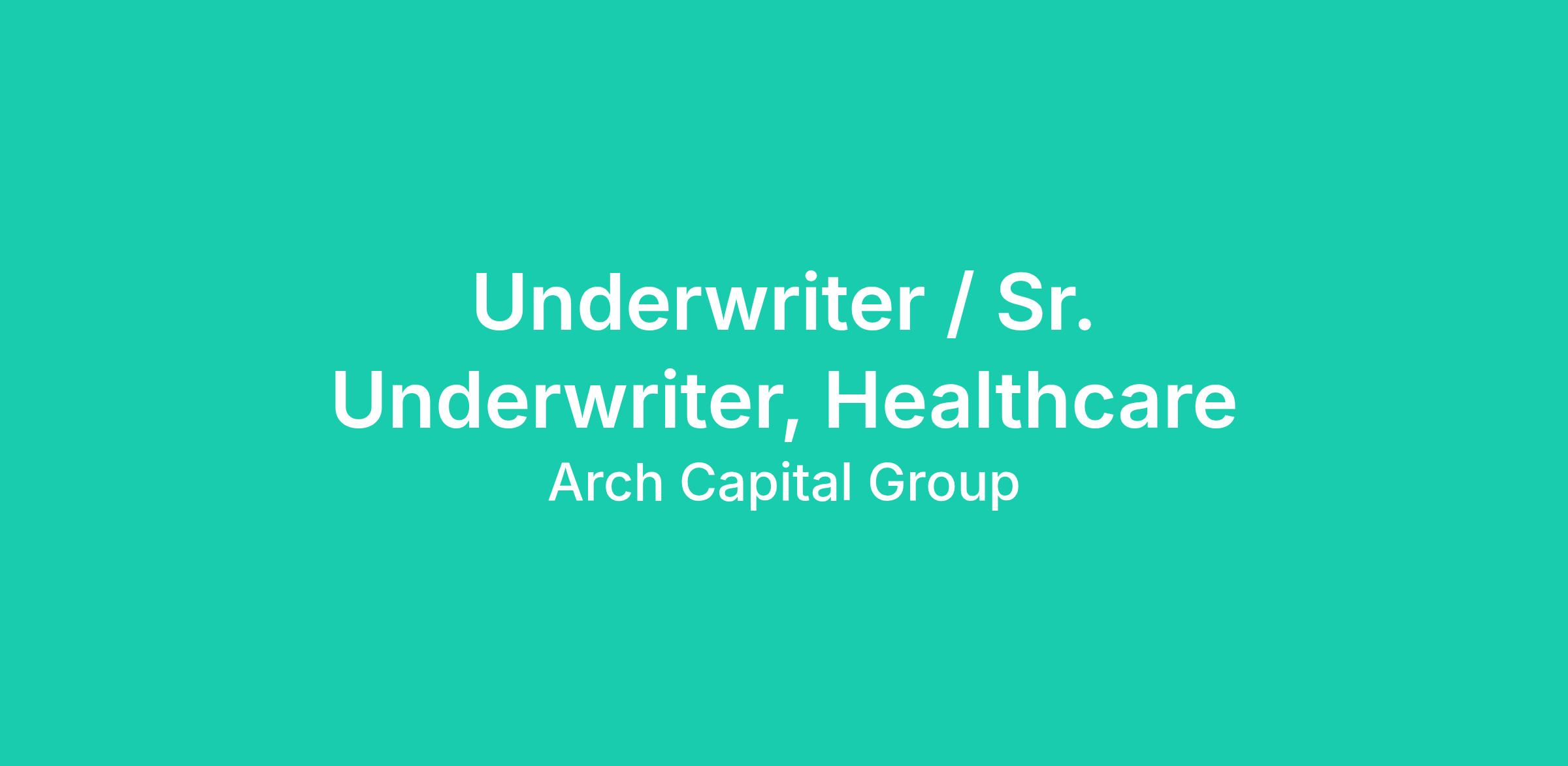 We are seeking a creative and motivated individual to join our Healthcare Professional Liability Underwriting team. Our suite of Healthcare products, engaged management team and strong capital base have enabled us to establish a prominent presence in the growing Medical Malpractice market. Our Healthcare team embraces the collaboration necessary to innovate in today’s evolving marketplace; encourages participation and diversity of thought; and relies on talented, innovative individuals to set Arch apart from our competitors.