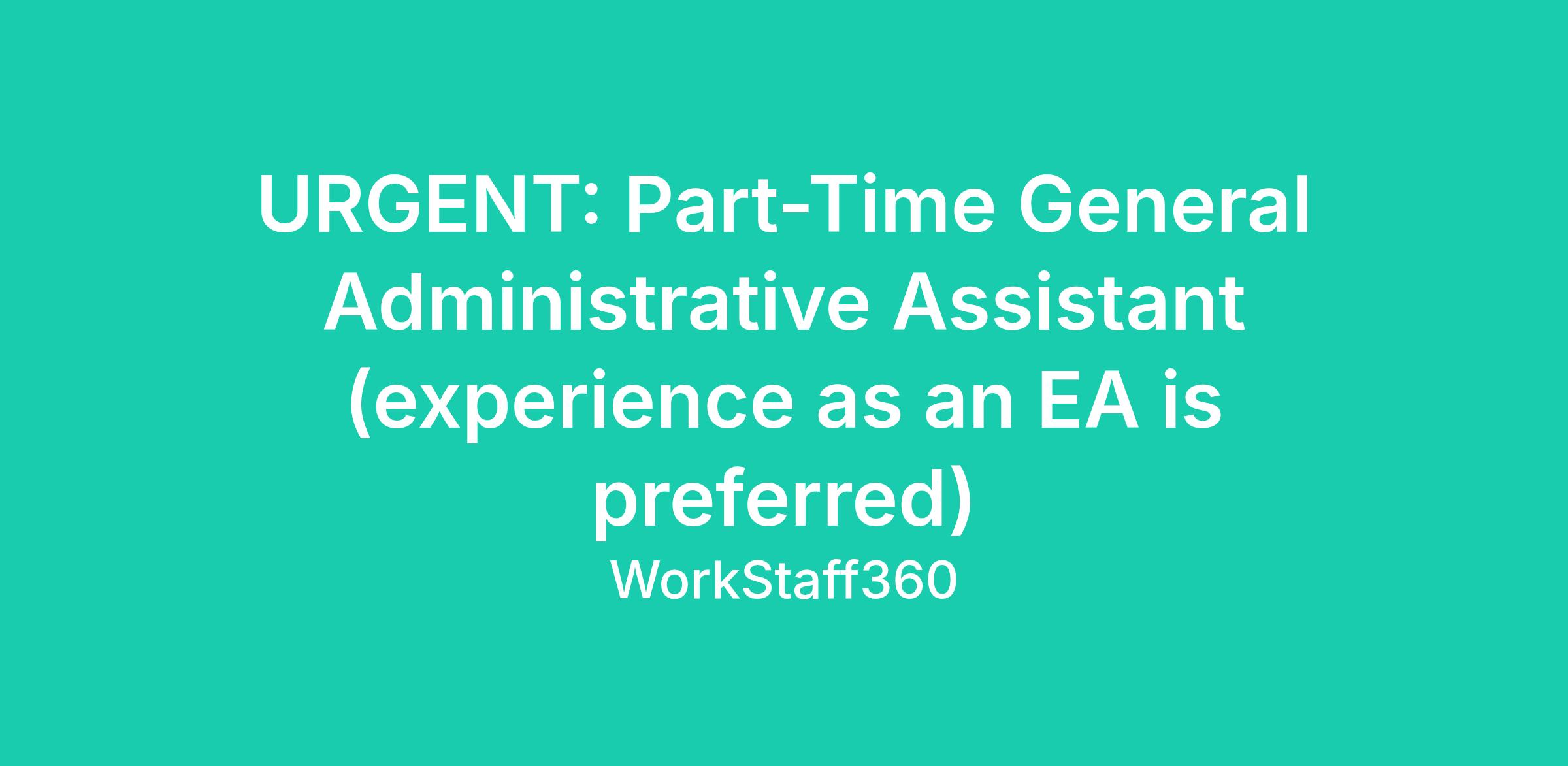 URGENT: Part-Time General Administrative Assistant (experience as an EA is preferred)