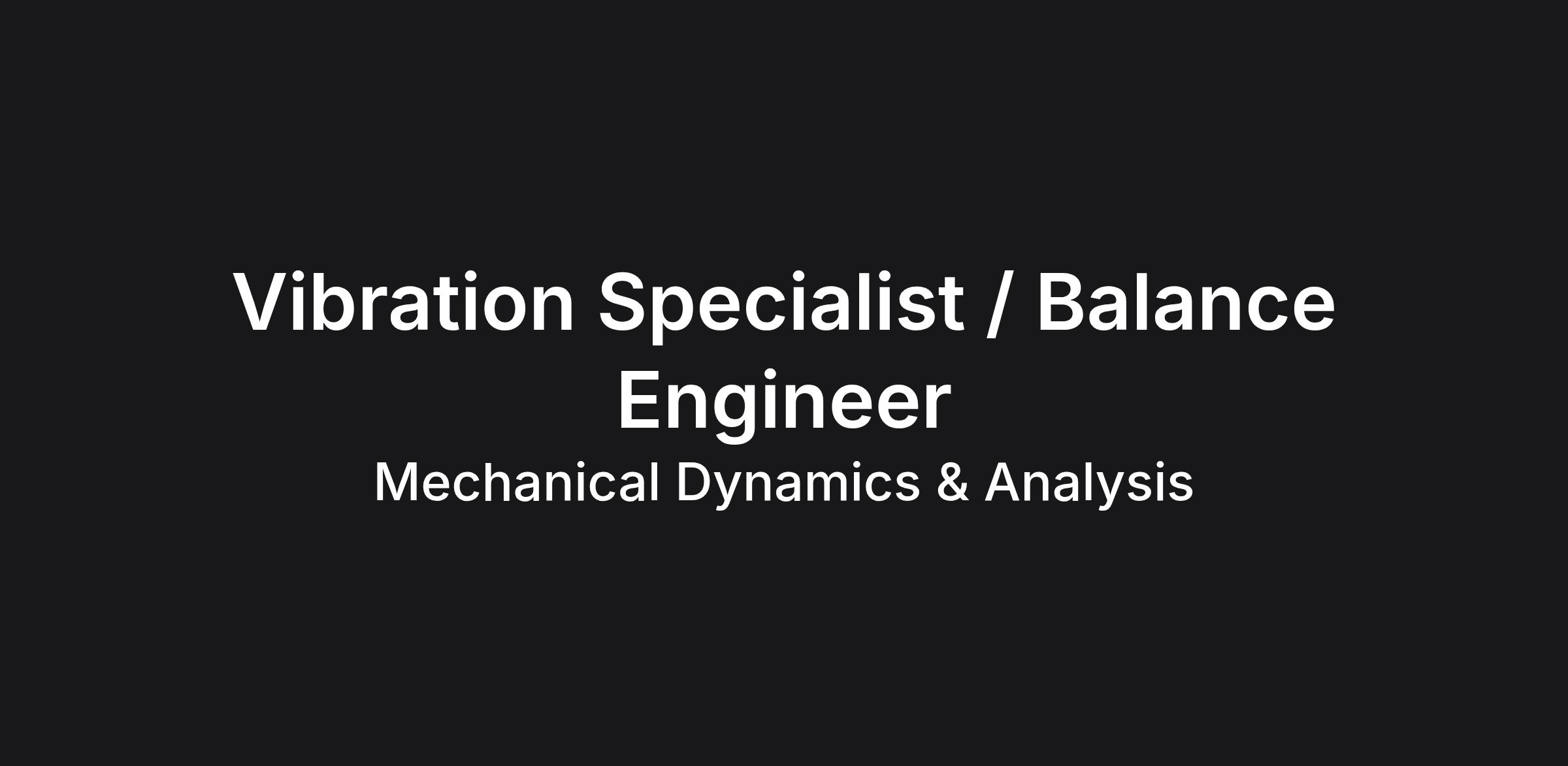 In the role of Vibration Specialist/ Balance Engineer, you will: