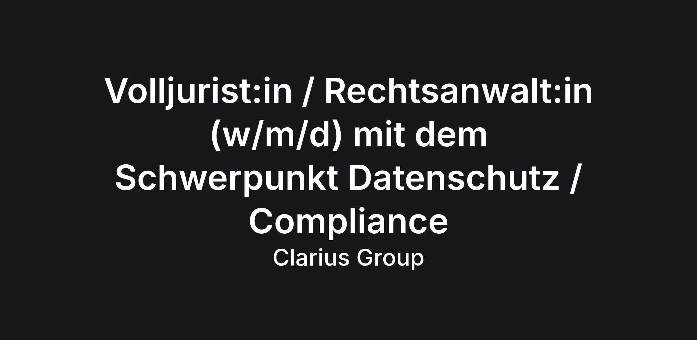 Volljurist:in / Rechtsanwalt:in (w/m/d) mit dem Schwerpunkt Datenschutz / Compliance