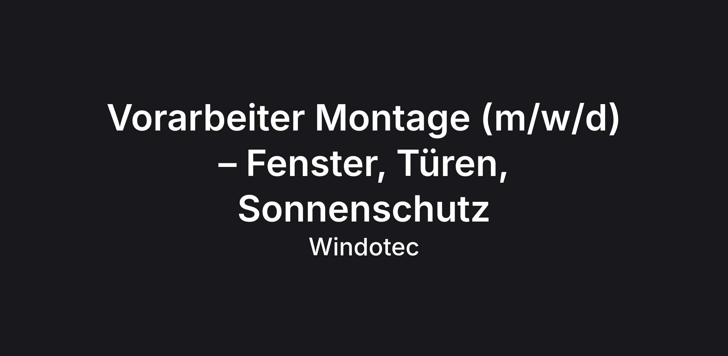 Vorarbeiter Montage (m/w/d) – Fenster, Türen, Sonnenschutz