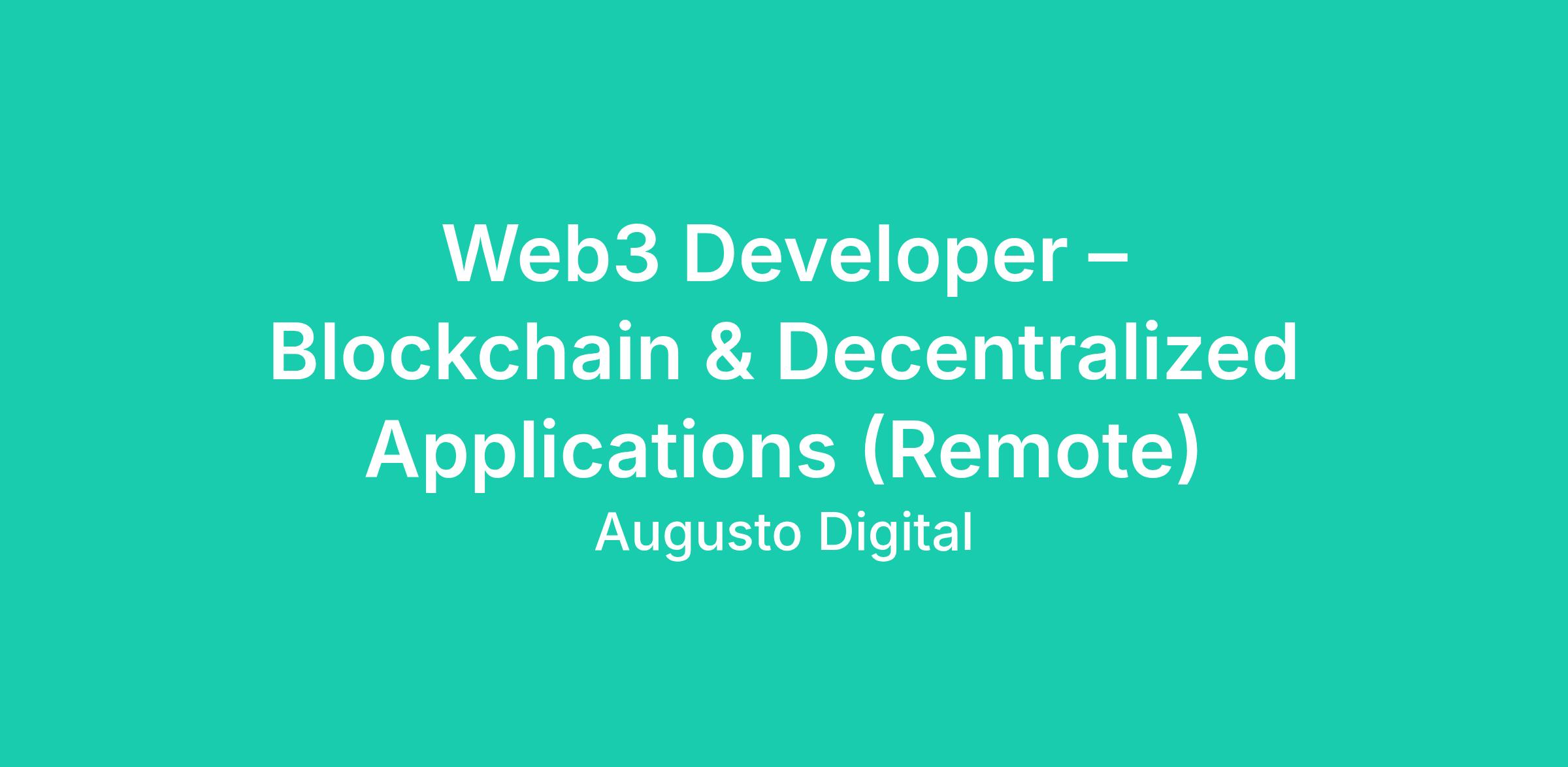 Web3 Developer – Blockchain & Decentralized Applications (Remote)