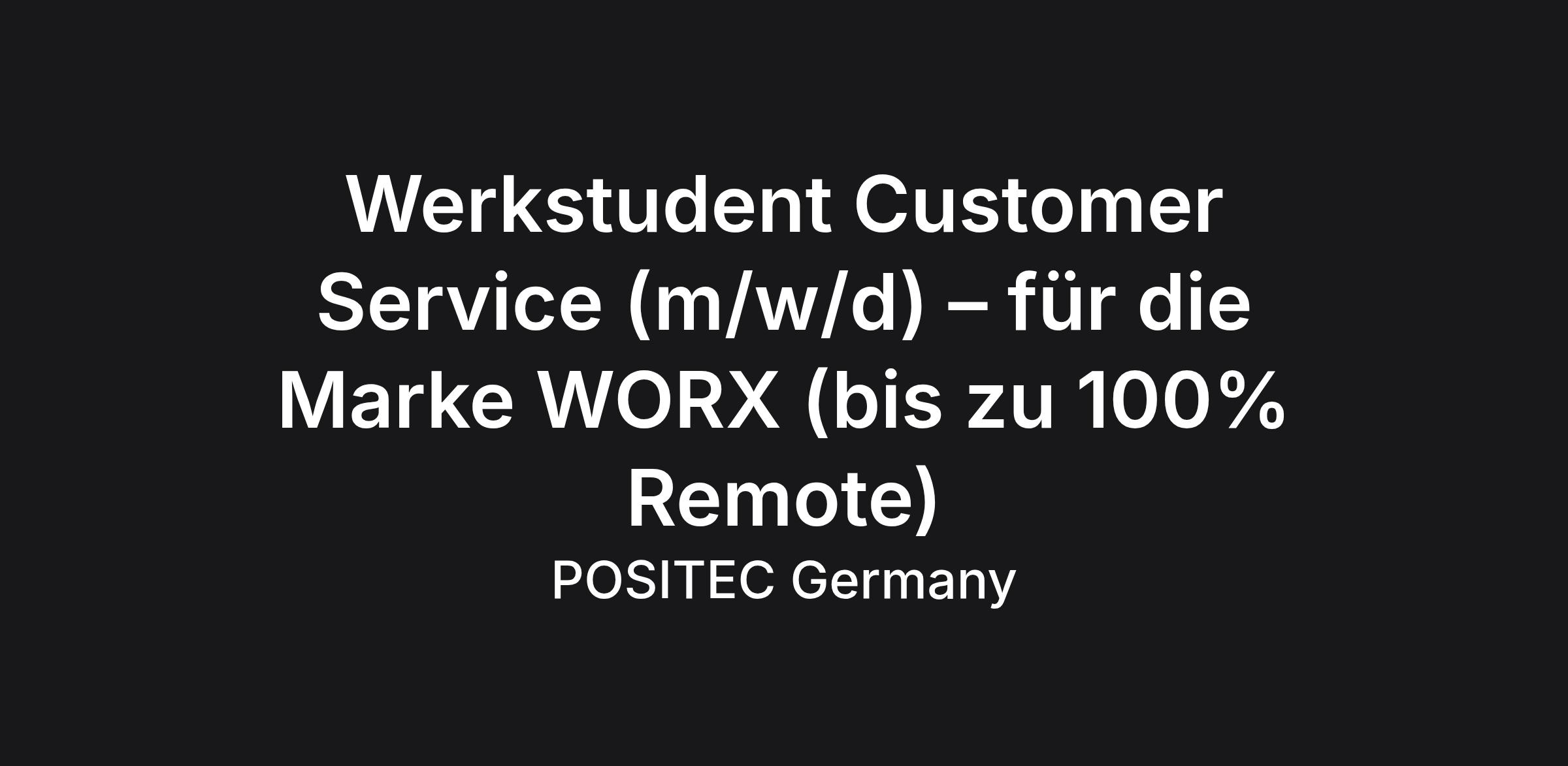 Werkstudent Customer Service (m/w/d) – für die Marke WORX (bis zu 100% Remote)