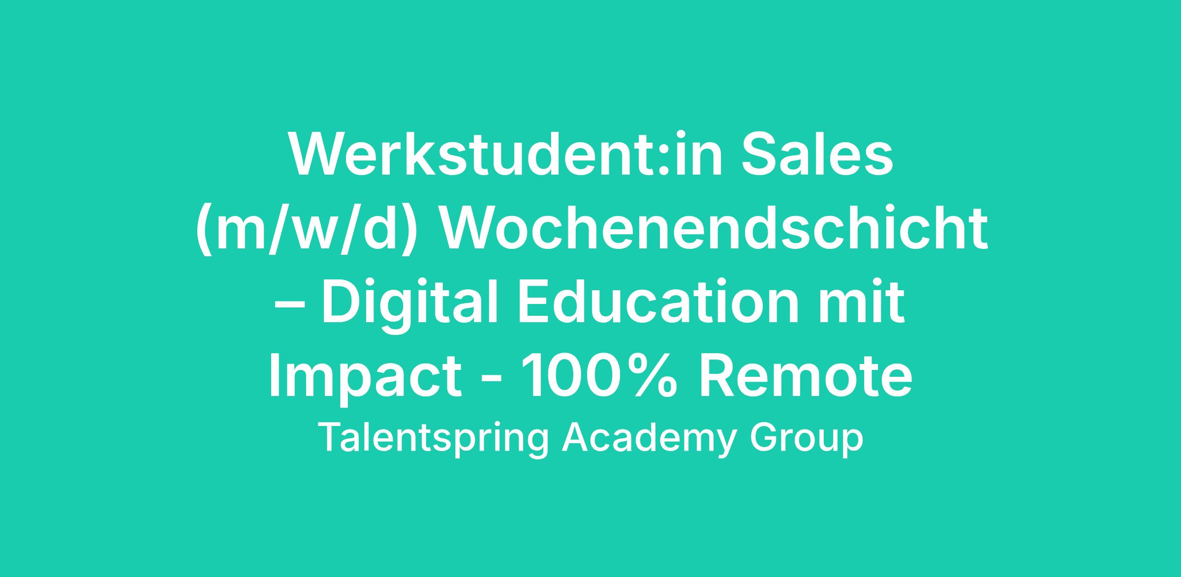 Werkstudent:in Sales (m/w/d) Wochenendschicht – Digital Education mit Impact - 100% Remote