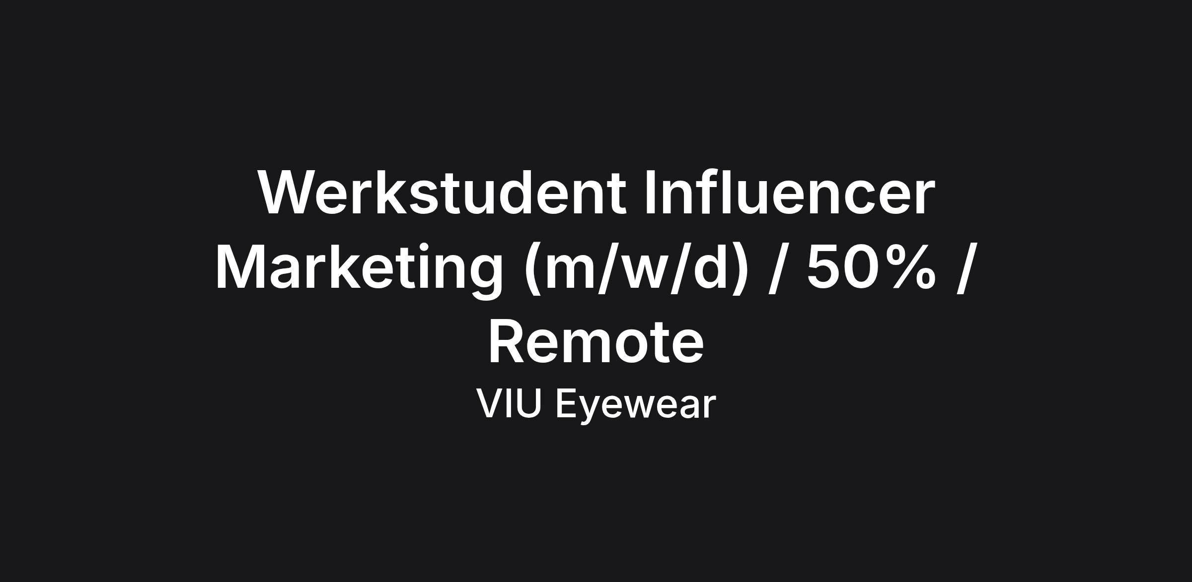 Werkstudent Influencer Marketing (m/w/d) / 50% / Remote