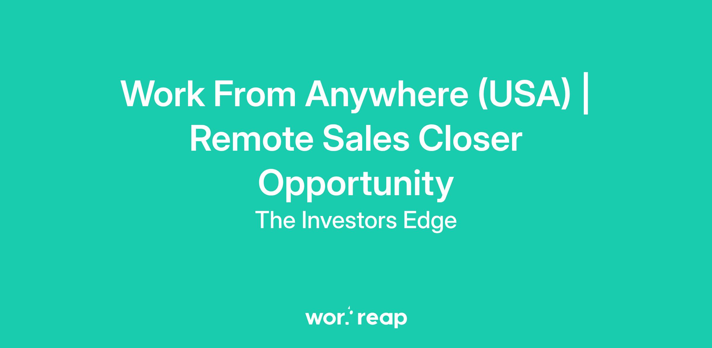 Work From Anywhere (USA) | Remote Sales Closer Opportunity