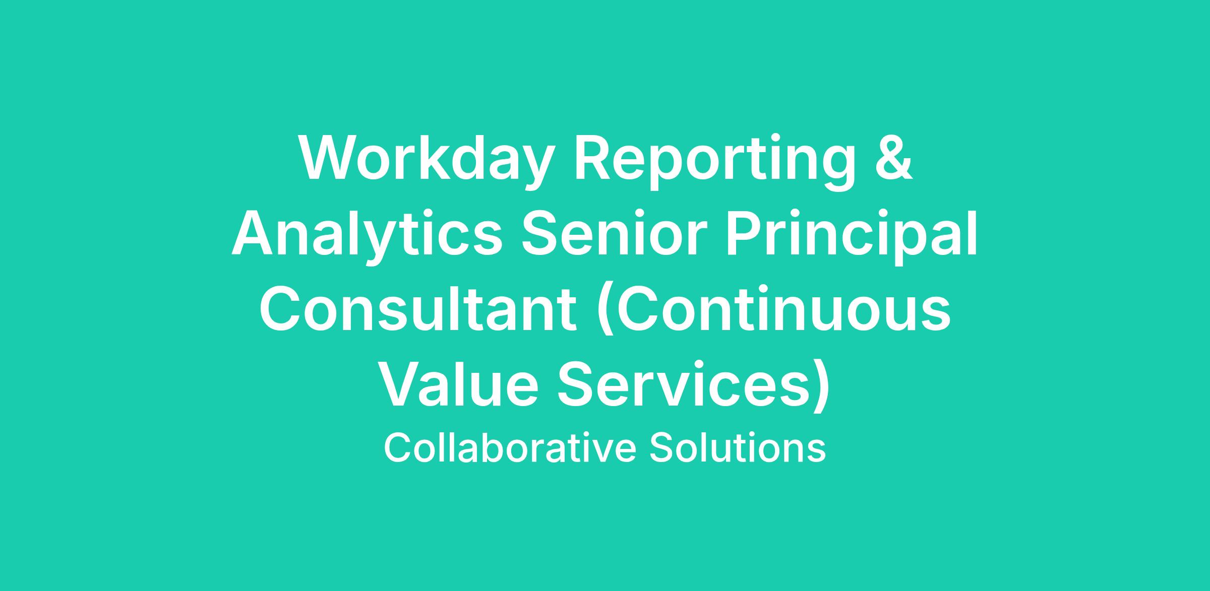 As a Workday Reporting & Analytics Senior Principal Consultant (Continuous Value Services) you will serve as a thought leader in our Workday Reporting and Analytics practice to deliver superior results to our customers by designing and implementing solutions using Workday Report Writer, Calculated Fields, Prism, and other related tools in support of HCM implementations and post-production support projects.