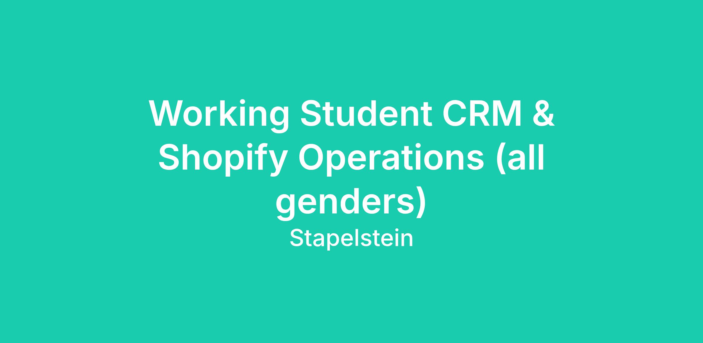Als Working Student im Bereich CRM & Shopify Operations unterstützt du unser Team dabei, Kund:innenbindung und Conversion entlang der gesamten Customer Journey weiterzuentwickeln.