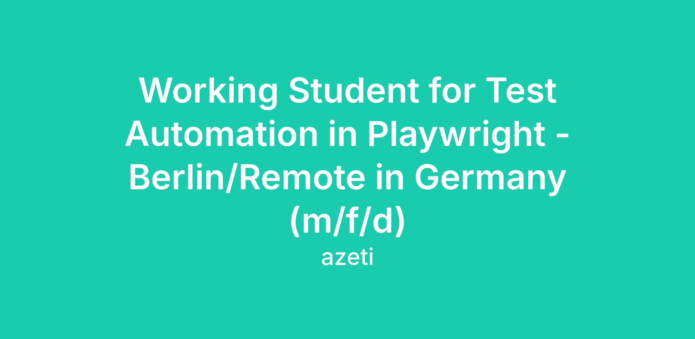 Working Student for Test Automation in Playwright - Berlin/Remote in Germany (m/f/d)