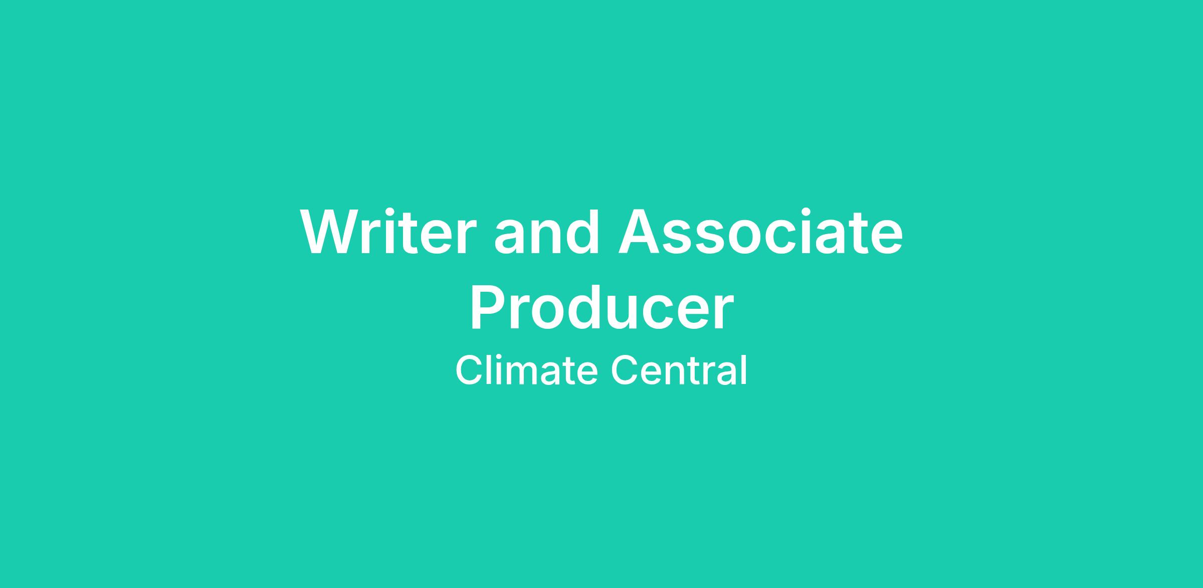 Climate Central is seeking a media savvy writer and associate producer with experience in science communication. This person will help create reporting resources on a range of topics related to climate change impacts and solutions to help our network tell timely, relevant, and accurate stories about our warming planet. This work will take shape in writing, videos, and data visualizations, so comfort with different forms of communication is key. Reporting to the vice president for content creation, the writer and associate producer will join an interdisciplinary team of communications professionals, writers, graphic designers, scientists, and technologists and will work across programs and projects at the organization.