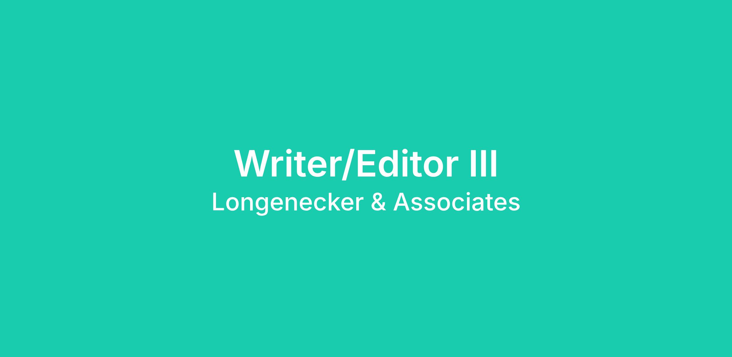 Longenecker & Associates (L&A), a Geosyntec Company, seeks a motivated Wrtier/Editor III to contribute to our mission supporting our work at Los Alamos National Lab in Los Alamos, NM.