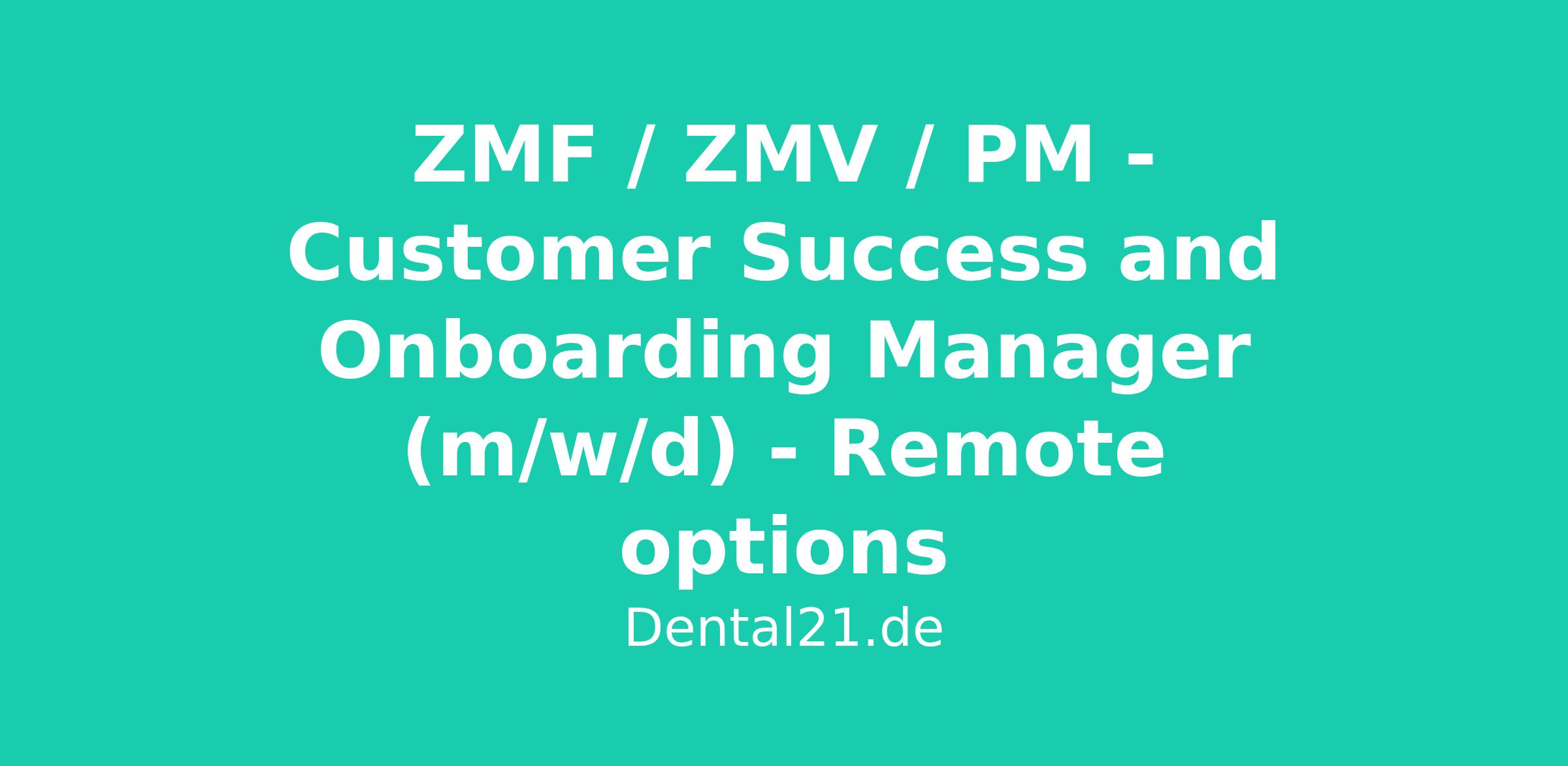 ZMF / ZMV / PM - Customer Success and Onboarding Manager (m/w/d) - Remote options